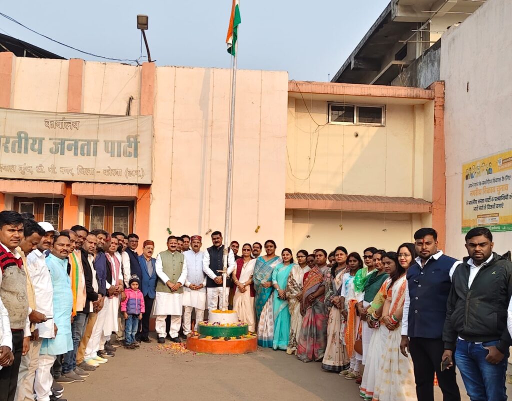 कोरबा। भारतीय गणतंत्र की 77वीं वर्षगांठ के पावन अवसर पर 26 जनवरी को भारतीय जनता पार्टी जिला कार्यालय पं. दीनदयाल कुंज टीपी नगर कोरबा में देशभक्ति और उत्साह का माहौल देखने को मिला। भाजपा जिलाध्यक्ष श्री गोपाल मोदी जी ने विधिवत तिरंगा फहराकर राष्ट्रीय ध्वज को सलामी दी। इस अवसर पर उपस्थित पदाधिकारियों एवं कार्यकर्ताओं को संबोधित करते हुए जिलाध्यक्ष श्री गोपाल मोदी जी ने कहा कि गणतंत्र दिवस हमारे संविधान, लोकतांत्रिक मूल्यों और राष्ट्र की एकता-अखंडता का प्रतीक हैं। यह दिन हमें अपने कर्तव्यों की याद दिलाता है और राष्ट्र निर्माण में सक्रिय सहभागिता के लिए प्रेरित करता है।