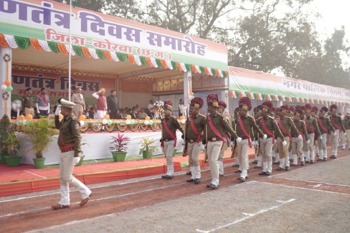 कोरबा ।राजस्व एवं आपदा प्रबंधन, पुनर्वास, उच्च शिक्षा मंत्री छत्तीसगढ़ शासन श्री टंक राम वर्मा के मुख्य आतिथ्य में कोरबा जिला मुख्यालय के सीएसईबी फुटबॉल ग्राउंड में हर्षोल्लास के साथ 77वें गणतंत्र दिवस के जिला स्तरीय समारोह का आयोजन हुआ। श्री वर्मा ने ध्वजारोहण कर परेड की सलामी ली। जिला स्तरीय समारोह में इस वर्ष राष्ट्रगान के साथ-साथ राष्ट्रीय गीत का भी सस्वर गायन किया गया। मुख्य अतिथि द्वारा प्रदेश के मुख्यमंत्री श्री विष्णुदेव साय का छत्तीसगढ़ वासियों के नाम संदेश का वाचन किया गया। अनेकता में एकता के प्रतीक गुब्बारे आकाश में छोड़े गये। गणतंत्र दिवस के अवसर पर जिले के शहीदों के परिजनों को शॉल, श्रीफल भेंट कर विशेष सम्मान किया गया और वीर सेनानियों की शहादत के प्रति कृतज्ञता व्यक्त की गई।