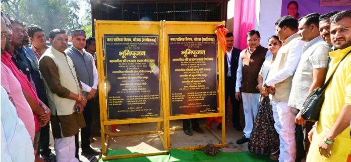 उद्योग मंत्री लखनलाल देवांगन ने नगर पालिक निगम कोरबा के वार्ड क्र. 20 पथर्रीपारा में किया 25 लाख रू. के विकास कार्यो का भूमिपूजन