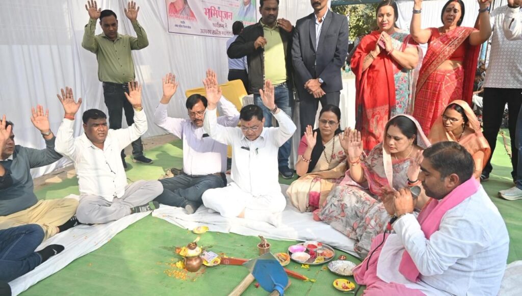 प्रदेश के उद्योग मंत्री श्री लखनलाल देवांगन के मुख्य आतिथ्य एवं महापौर श्रीमती संजूदेवी राजपूत की अध्यक्षता में आयोजित कार्यक्रम में किया गया विकास कार्यो का भूमिपूजन